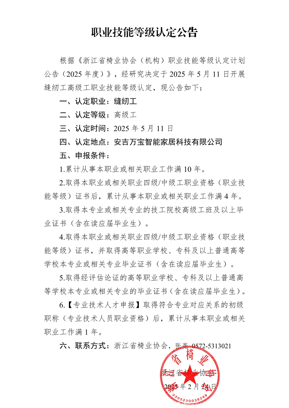 职业技能等级认定公告